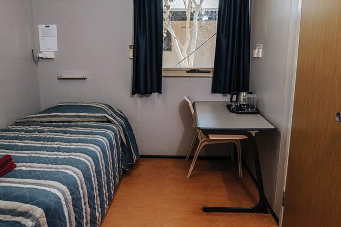 85 budget single person camp rooms (ensuited) with excellent catering options.